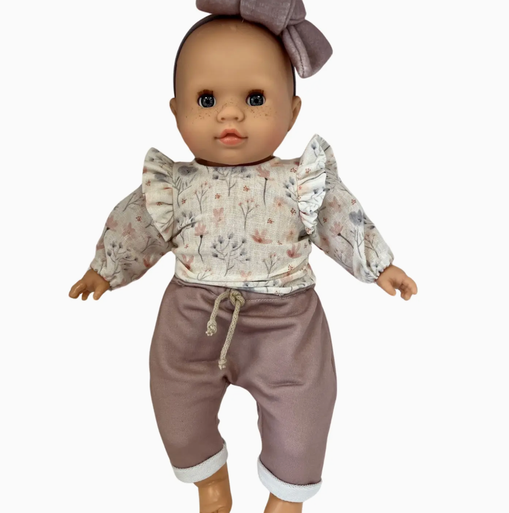 Measures approximately 34cm tall. The eyes do not close. The dolls are gendered. recommended age 0+ because the eyelashes are painted.