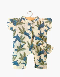 Linda long jumpsuit in ecru double gauze and its flower embroidery