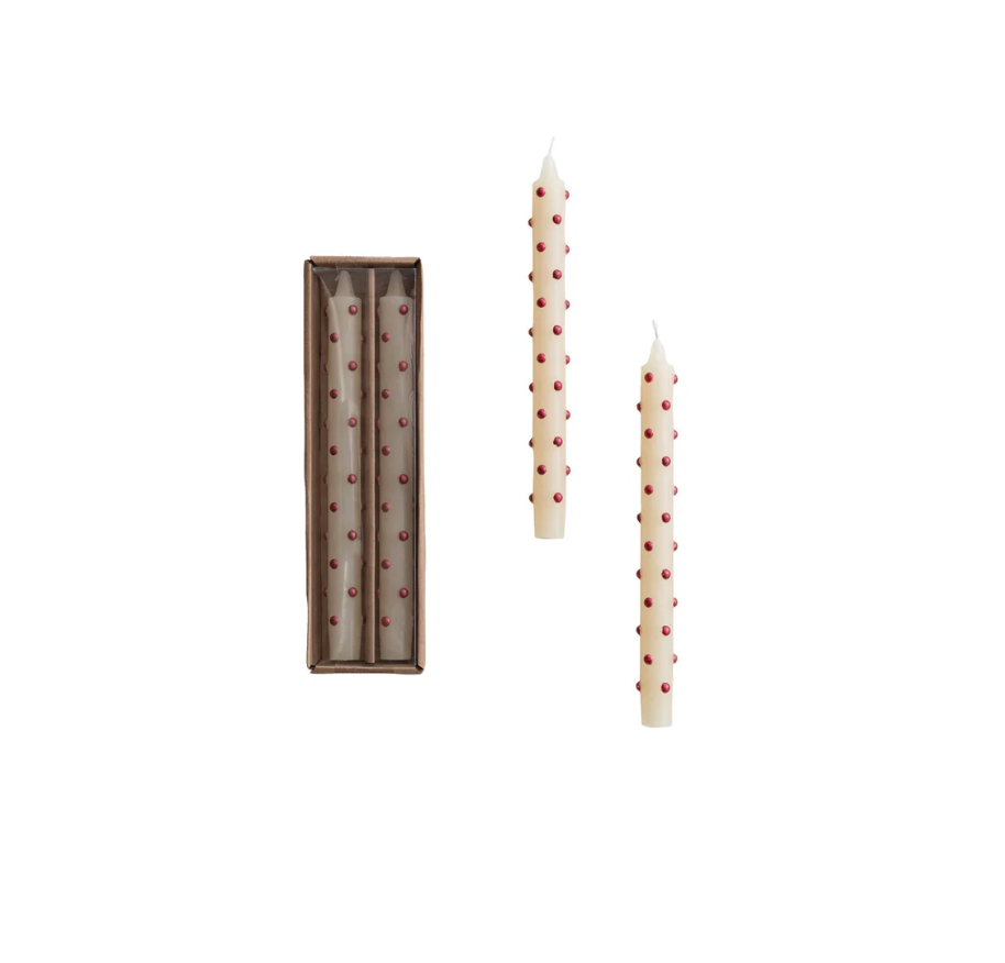 Unscented Taper Candles with 3D Red Dots in Box, Set of 2 SALE