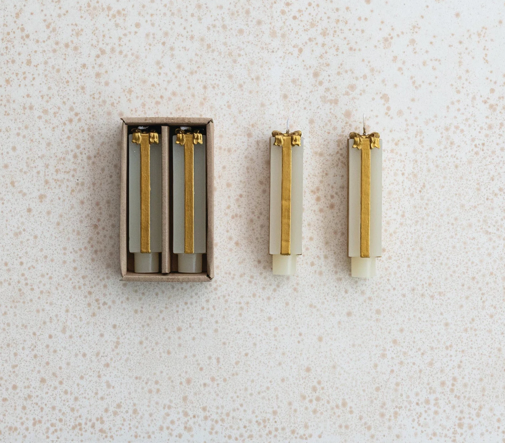 5" Set of 2 Gift Box Shaped Taper Candles - Ivory and Gold