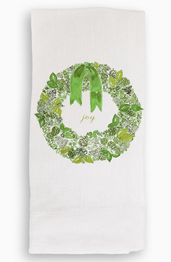 Green Wreath with “Joy” Tea Towel
