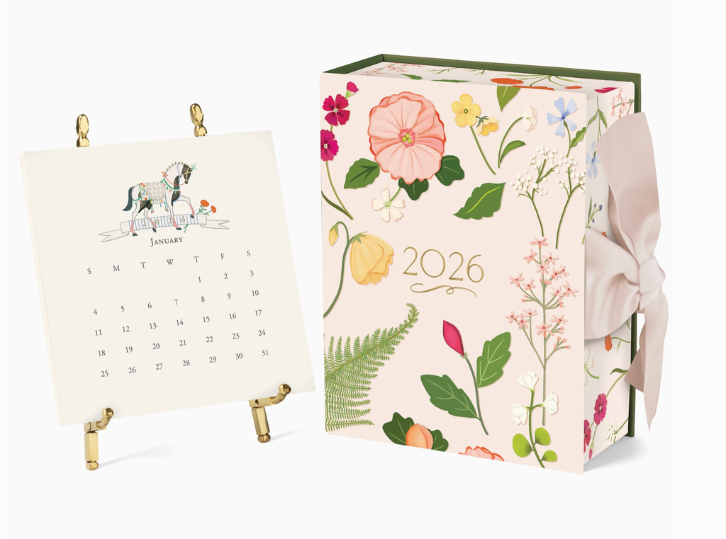 Our best-selling calendar can make for a beautiful gift - the tabletop piece celebrating each month with you and your friends alike every year. Each 6-inch square—one for every month—features an original Karen Adams design that is printed and hand-finished in our studio. A fine gold or silver easel is enclosed to showcase the month's artwork on your desk, shelf, or counter.