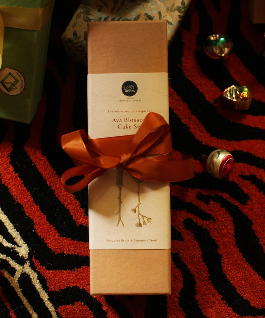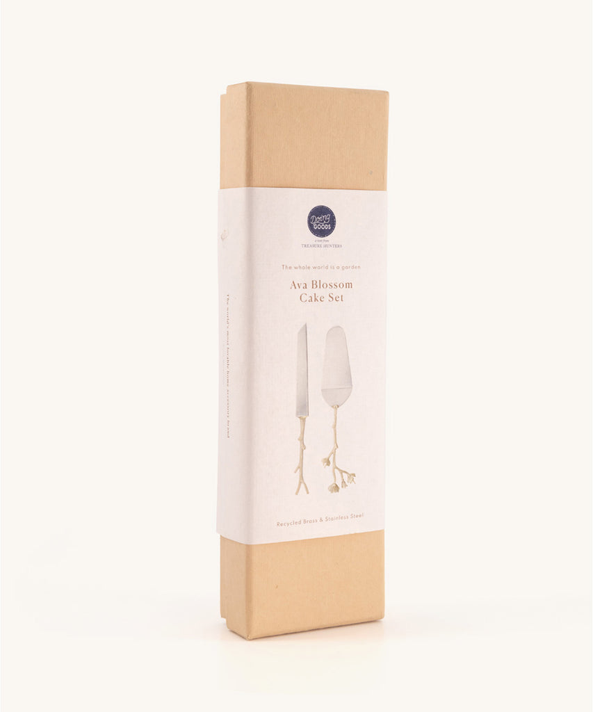 Beautifully packaged for gifting in a pastel pink box made from recycled cotton paper. This cake service is a perfect gift to offer to the person who receives you.