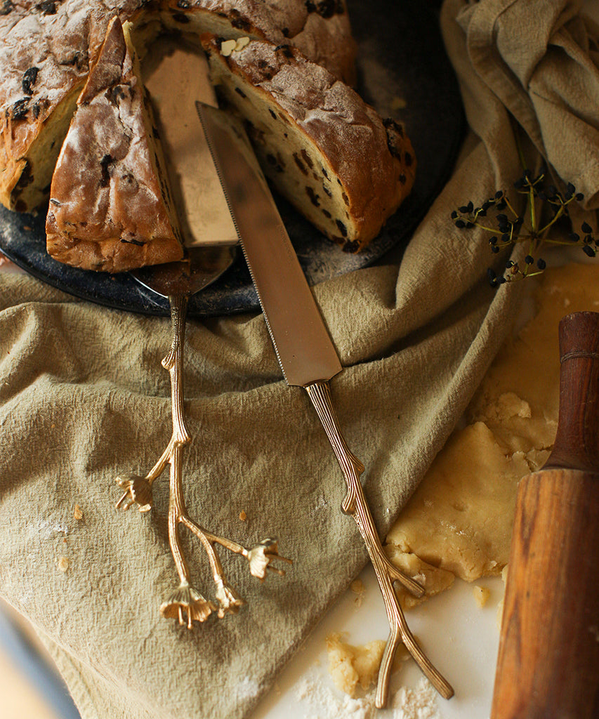 This cake service is handmade in India. Due to the handcrafted nature of this item, there may be slight variation in the appearance of each piece. Imperfect but unique!