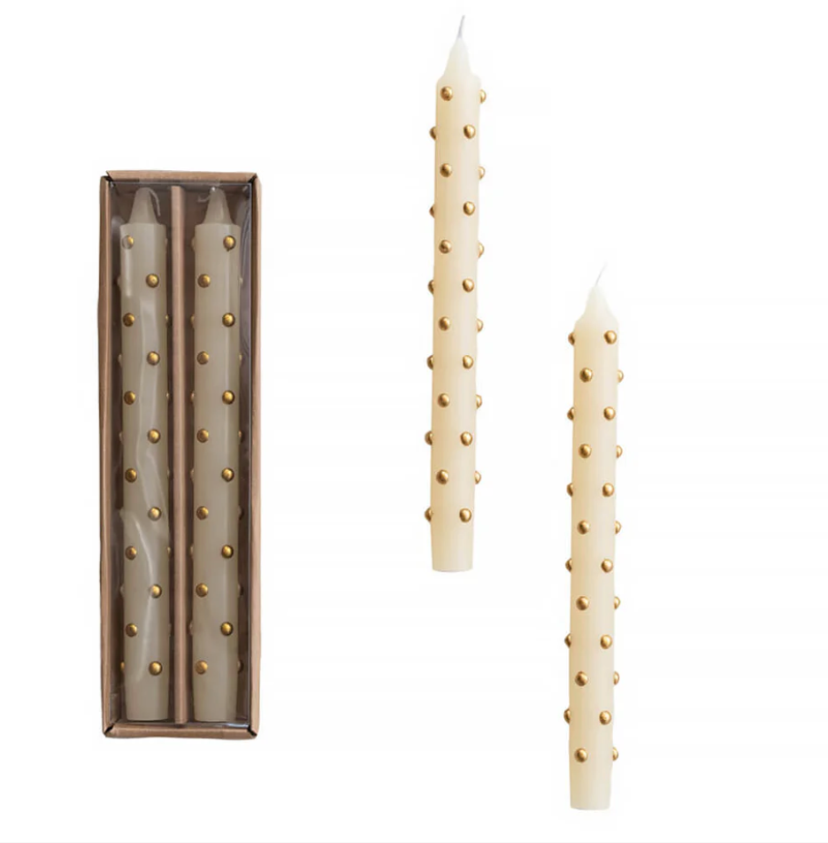 Unscented Taper Candles with 3D Gold Dots in Box, Set of 2