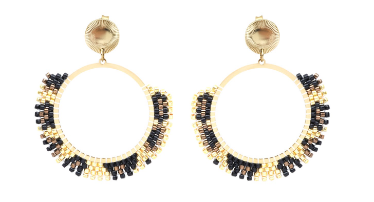 Pair of Tal earrings, made of Miyuki beads from Japan, are entirely handmade. Miyuki beads are renowned for their brilliance and perfect regularity. They are a guarantee of high quality and durability. Tal earrings require several hours of meticulous work. Composition: Gold Miyuki Beads