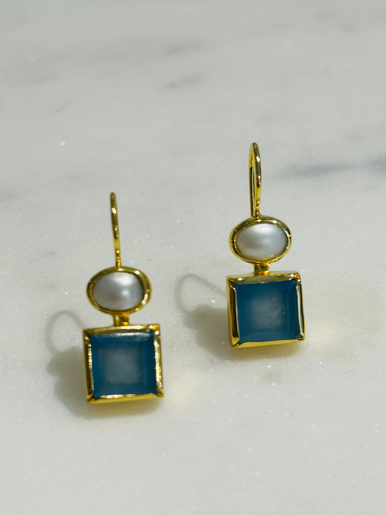 Kathy Earring Gold Plated - Blue Topaz, Iolite & Pearl