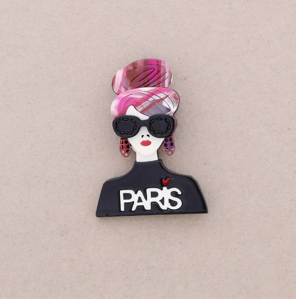 Channel chic Parisian flair with this Resin Eyewear Girl Brooch, featuring a stylish figure dressed in a fashionable Paris shirt. The brooch captures the essence of modern elegance, with a carefully crafted resin design showcasing the girl's oversized eyewear and trendy attire. The detailed Paris shirt adds a playful, cosmopolitan touch, making it a perfect accessory for those who love to express their passion for fashion and art. Ideal for adding a unique, fashionable statement to jackets, bags, or scarves, this brooch is the perfect way to infuse a little Parisian charm and personal style into any outfit.