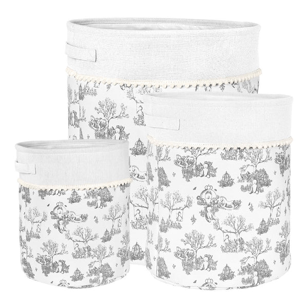 Keep the baby's room tidy with this set of 3 round pans decorated in childlike Jouy cloth.