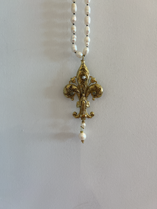 150 cm Long Necklace with Cultured Pearls Flowers- Taupe