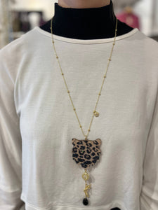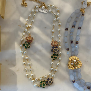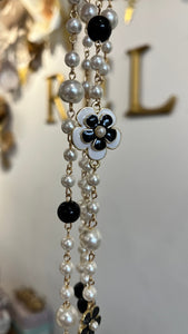 Long Ball Necklace with Pearl Finish Flowers Metal Enamel