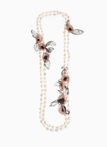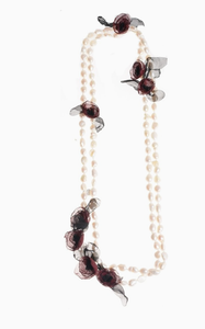 150 cm Long Necklace with Cultured Pearls Flowers- Garnet