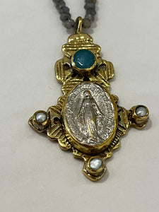 Religious medals, W/ Amethyst Pink Quartz Necklace