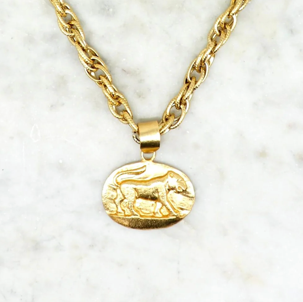 Discover classic elegance with this long necklace adorned with medallions bearing the image of a roman coin. Resolutely a piece of jewelry that evokes the heritage of our civilization, between history and modernity.