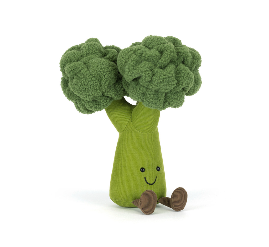 Amuseables Broccoli is a soul sensation. With a crown of bouncy green florets and a serious glitterball obsession, he’s the reigning king of Saturday nights.