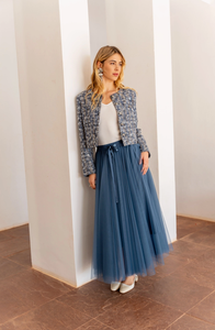 Velvet Blazer Jacket with Gold Buttons- Blue