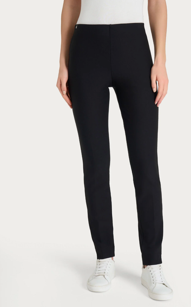 This style is constructed with an elasticized waist and no pockets, as comfortable as wearing leggings while maintaining the elegance of pants.