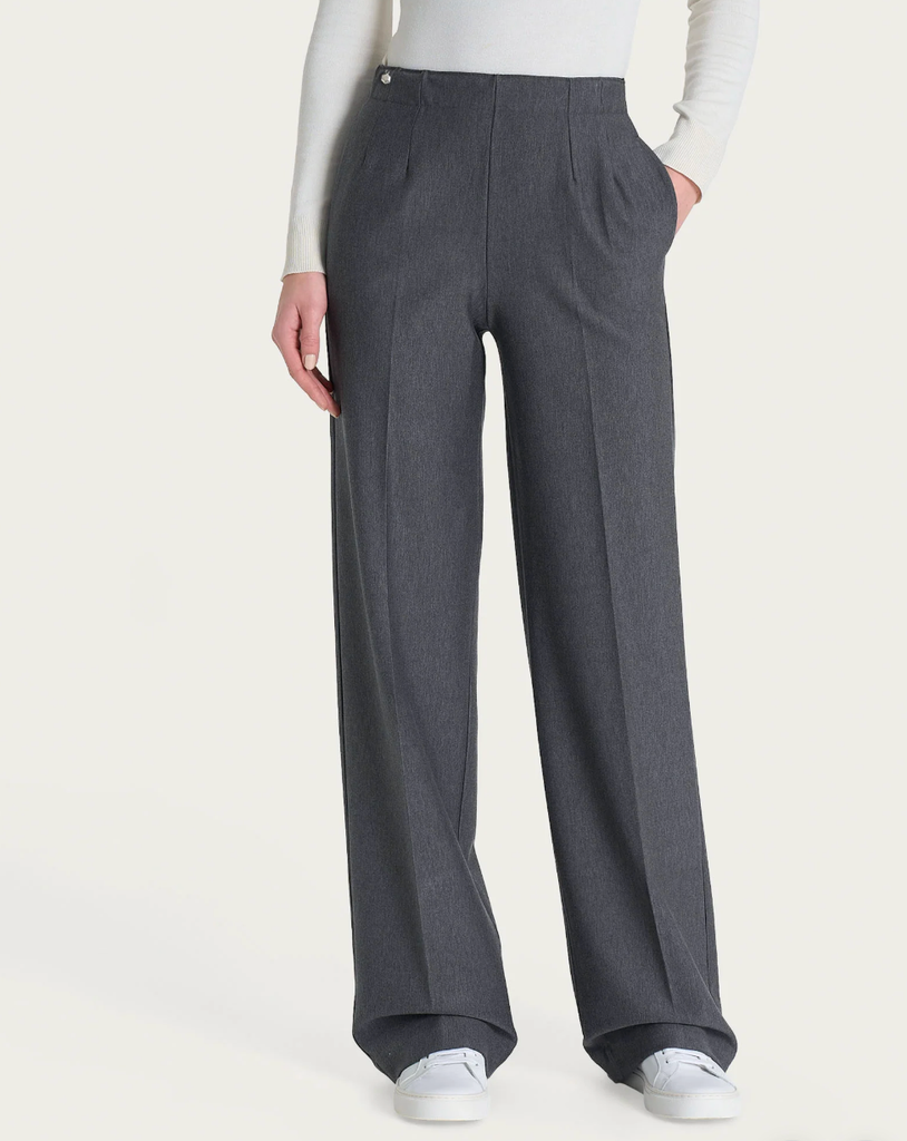 This style is constructed with an elasticized waist without belt loops, but with delicate darts on both the front and back for added elegance. With practical side pockets, it is as comfortable as wearing leggings while maintaining the elegance of pants.