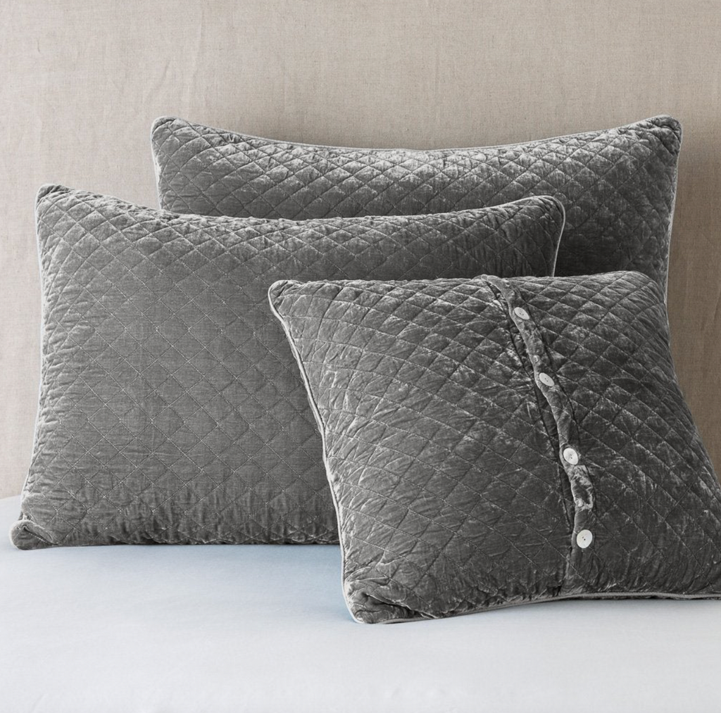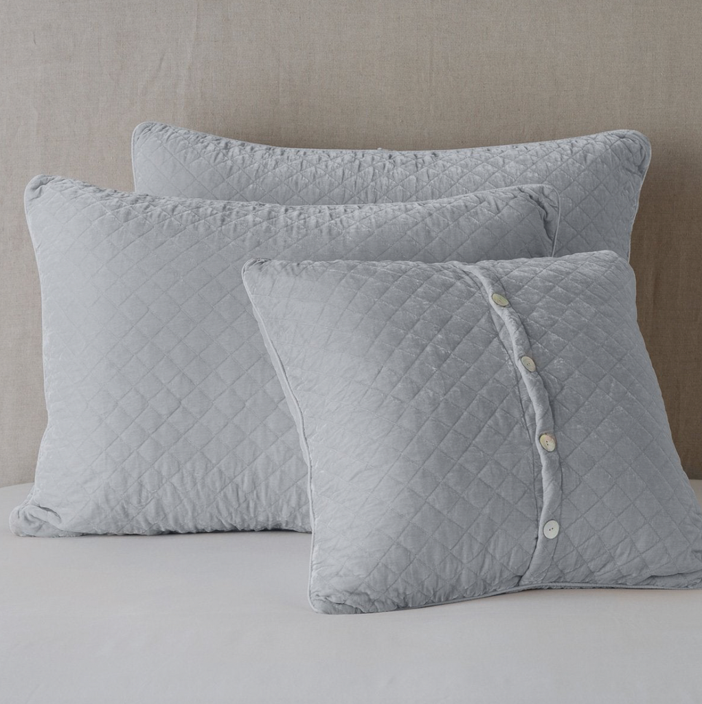 FINAL SALE* Silk Velvet Quilted Pillow Shams Bella Notte Linens Pearl Royal Stocked