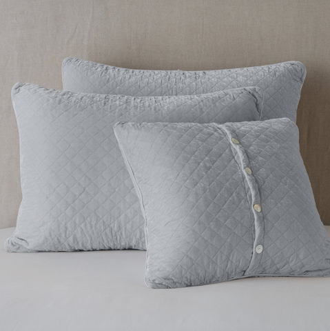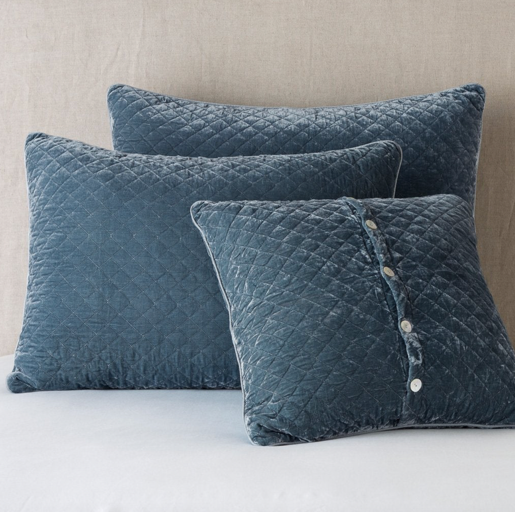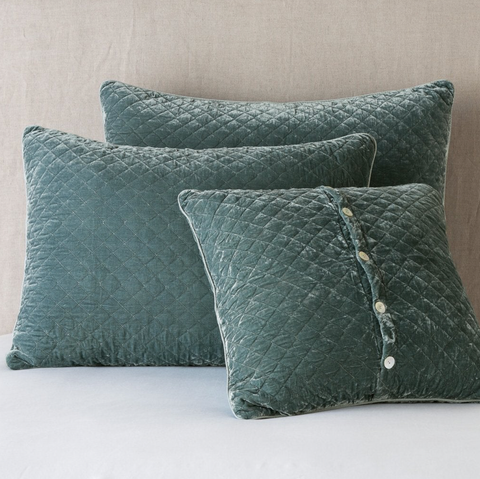 Luscious and jewel toned, our Silk Velvet Quilted Shams are a luxurious anchor to your bed. Finished with satin piping and closed with our signature akoya shell buttons, each garment dyed sham is unparalleled in beauty and quality, a piece to cherish for years to come.