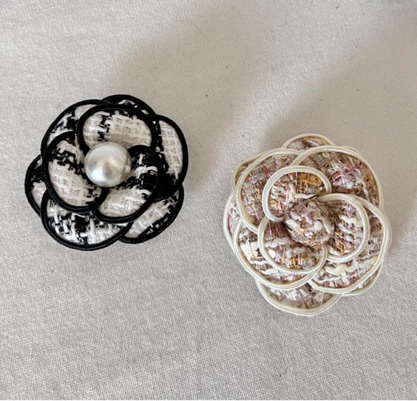 Flower Hair Clip that comes in both a black flower, white flower and Pink