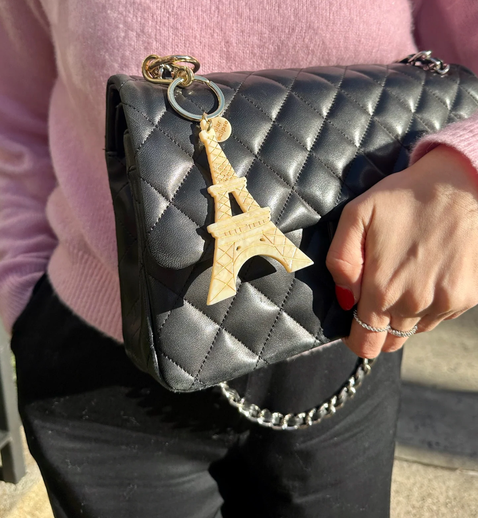 Hand-painted Eiffel Tower Bag Charm + Keychain | Eco-Friendly