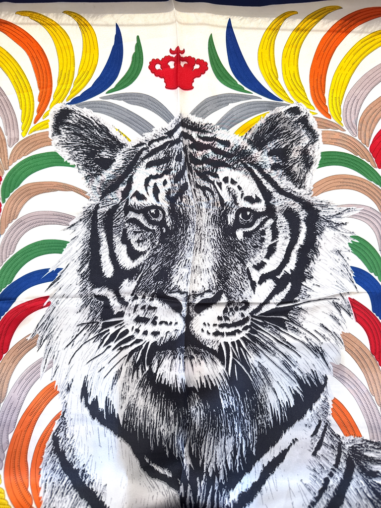 Fierce meets fabulous. This silk tiger scarf blends bold colors with a sleek, silky finish—an instant way to elevate your outfit. Tie it around your neck or wrist, or style it on your handbag for a pop of personality and color.